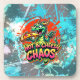 Un dragón juguetón con cuernos devora con entusiasmo una porción de pizza cursi, encarnando el caos de un divertido y delicioso fiesta de pizza.