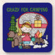 ¡Los chicas que aman el acampar amarán este diseño lindo del aire libre que ofrece a un chica cabelludo rubio en vacaciones que acampan, un oso, búho, el campista, árboles, y fuego del campo!