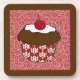 Posavasos Chocolate Cupcake on Red and White Pattern