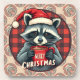 A charming raccoon dressed in a Santa hat holds a steaming mug of cocoa before a red buffalo plaid backdrop, capturing the cozy spirit of a rustic woodland Christmas. The combination of festive red, soft gray fur, and classic flannel pattern brings warmth and nostalgia to the holiday season. With its blend of whimsy and modern country style, this cheerful design perfectly embodies the charm of winter mornings and Christmas gatherings. AI generated artwork.
