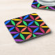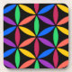 Diseño geométrico abstracto de círculos interrelacionados, colores arcoiris brillantes sobre fondo negro