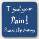 ¡Siento tu dolor! Por favor, deja de compartir” Cita divertida y grosera para dejar de hablar. El regalo ideal de posavasos con chiste sarcástico para maridos, novios e introvertidos. Tipografía de escritura a mano azul marino y blanca creada por The Sweetmans