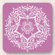 Esta mandala blanca se asienta sobre un fondo suave y de trébol violeta. El color es relajante y tranquilo. Parte de la colección Jarn Mandala.