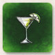 Un diseño elegante de un cóctel en una copa de cóctel contra el verde de la botella, con un color de fondo inspirado.