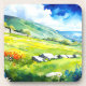 Panorama panorámica "Fielddale" en Yorkshire Dales. Una tranquila escena de Yorkshire Dales se despliega en esta estilizada acuarela, con colinas ondulantes y campos rodeados de paredes de piedra. Las coloridas flores del prado realzan el ambiente tranquilo y relajado, reflejando el encanto de este idílico campo inglés.