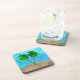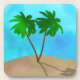 Amos en una escena de playa de palmeras tropicales, arena y cielo hechos a partir de un collage digital de acuarelas e imágenes estampadas