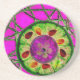 Fotografía abstracta en color de la rebanada de naranja con joyas en el fondo de malla.