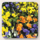 coloridas pansias, flores de color amarillo, azul, naranja y blanco.