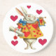 Práctico de costa redondo de la piedra arenisca con un vintage Alicia en la imagen del país de las maravillas del conejo blanco en regalía llena en medio de corazones rojos caprichosos. Vea el práctico de costa plástico a juego, el práctico de costa de papel y las servilletas. Vea la colección entera del práctico de costa del país de las maravillas en la sección de los prácticos de costa de FOOD/BEV el |.