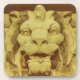 Cabeza de león, imagen fotográfica de un elemento arquitectónico de la cabeza de león. Los tonos dorados de la escultura de piedra se acentúan con sombras marrones oscuros.