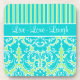 Esta moderna y moderna franja azul turquesa, verde y blanca con una tarima damasquinada "Live, Love, Laugh" sería un regalo ideal para la pareja joven y de moda. ¡personalizar como quieras!