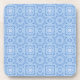 Combinación armoniosa de patrones geométricos lineales que se asemejan a un horizonte urbano tranquilo, adornado con delicadas estrellas y suaves soleadas en tonos azul pálido