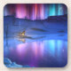 Las luces del norte brillan sobre un paisaje invernal nevado. Los tajos de rosa, púrpura, azul y verde iluminan los campos cubiertos de nieve y reflejan de un lago helado. A orillas del mar, una cabaña con una luz cálida que se transmite por las ventanas y un humo procedente de la chimenea, un refugio acogedor del frío espumoso.