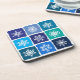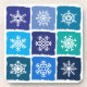 Copos de nieve con marco de grano blanco sobre fondo azul