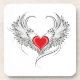 Corazón rojo pintado de forma artística con alas de ángel gris, decorado con un contorno suave negro.