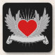 Ilustracion de corazón rojo con alas sobre fondo negro