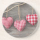 Posavasos Corazones rojos en la tabla de madera