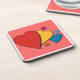 Este diseño presenta 3 corazones en amarillo, azul y rojo. Un contorno negro está en los corazones. Hay una variedad de flores rodeando los corazones. Se ha añadido un borde rojo o blanco. estas galerías están disponibles en cuadrado o redondo.