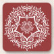 Esta mandala blanca se sienta sobre un fondo rojo oscuro. El color es rico y cálido. Parte de la colección Jarn Mandala.