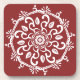 Esta mandala blanca se sienta sobre un fondo rojo oscuro. El color es rico y cálido. Parte de la colección Payon Mandala.
