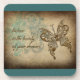 Fondo marrón angustiado con metalizado aspecto mariposa Texto dice: Cree en la belleza de sus sueños.