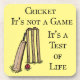Cricket No es un juego Es una prueba de vida - El diseño también muestra el críquet en blanco, el cricket en bolas y wickets.