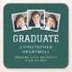 Estos catedráticos de la fiesta de graduación presentan un collage de tres fotos cuadradas personalizados encima de la palabra "graduado" en tipografía blanca esporádica sobre un fondo verde oscuro. Añada a continuación el nombre del graduado, el año escolar y el año de clase en sans serif font.