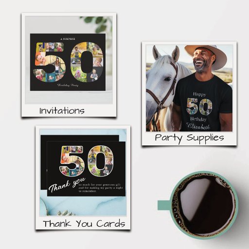 Posavasos Cuadrado De Papel 50.º Cumpleaños Crea tu propia foto múltiple