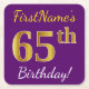 ¡Las características del este diseño de papel simples del práctico de costa un mensaje tienen gusto "del 65.o cumpleaños de FirstName! ", con "el 65.o" teniendo un falso/una imitación oro-como aspecto del color, en un fondo coloreado púrpura. El nombre puede ser modificado para requisitos particulares. Los prácticos de costa de papel personalizados como éstos se podrían quizás utilizar en una fiesta de cumpleaños para alguien que está celebrando su sesenta quintos cumpleaños. [~Z0000197]