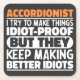 Funny Académica Acordante Dice "Acordeonista Intento Hacer Que Las Cosas Sean Pruebas Idiotas Pero Siguen Haciendo Mejores Idiotas". Agarra este divertido diseño acordeonista como un regalo gracioso para una madre, papá o amigo formidable.