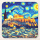 Posavasos Cuadrado De Papel Acrópolis nocturna estrellada Atenas Grecia