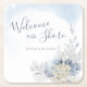 Posavasos Cuadrado De Papel Acuarela Bienvenido a la Costa Cena en la Playa