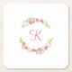 Posavasos Cuadrado De Papel Acuarela floral en rosa, amarillo y verde con mono