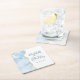 Posavasos Cuadrado De Papel Agate Geode Script Baby Blue Gold Boda