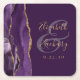 Posavasos Cuadrado De Papel Agate Geode Script Purple Gold Plum Boda
