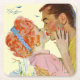 Artista: Bernard D'Andrea | Mujer de cabello rojo besando a un hombre detrás de girasoles con una silla azul y un gato.