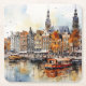 Lindo posavasos con Ámsterdam, Países Bajos. Hermosa ciudad europea, destino de viaje.