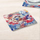 Posavasos Cuadrado De Papel Árbol floreciente abstracto rojo blanco azul amari