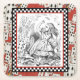 Sistema de 6 prácticos de costa disponibles del tablero cuadrado de la pulpa con un vintage Alicia blanco y negro en la imagen del país de las maravillas de Alicia bajo ataque por las tarjetas en un marco blanco y negro del tablero de damas contra un fondo de naipes contra rojo. Vea el práctico de costa plástico a juego y la servilleta de papel del cóctel. Vea la colección entera del práctico de costa del país de las maravillas en la sección de los prácticos de costa de FOOD/BEV el |.