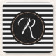 Estilosas láminas de papel de tablero de pasta hechas con un patrón de rayas horizontales en blanco y negro. Un círculo decorativo negro, en medio de la montaña rusa, tiene un monograma blanco de una sola letra. Personalice la carta para que se ajuste a sus necesidades. Ideal para cualquier uso y hace una buena idea de regalo.