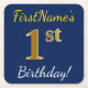 Posavasos Cuadrado De Papel Azul, Faux Gold 1er cumpleaños + Nombre personaliz