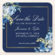 Posavasos Cuadrado De Papel Azul Marino Floral Dorado Elegante Salva la Fecha