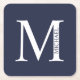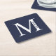Posavasos Cuadrado De Papel Azul Marino Personalizado Monograma y Nombre