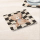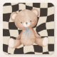 Posavasos Cuadrado De Papel Baby Shower Bear on Checkerboard Luncheon