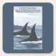 Posavasos Cuadrado De Papel Ballenas #1 - López, Washington de la orca