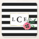 Posavasos Cuadrado De Papel Banda negra y monocultivos florales rosados