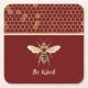 Posavasos Cuadrado De Papel Be Kind Bee and Honeycomb sobre Borgoña