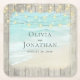 Posavasos Cuadrado De Papel Beach Coastal Rustic Wood String Lights Boda