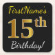 Posavasos Cuadrado De Papel Black, Faux Gold 15th Birthday + Custom Name