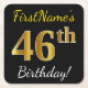 Posavasos Cuadrado De Papel Black, Faux Gold 46th Birthday + Custom Name